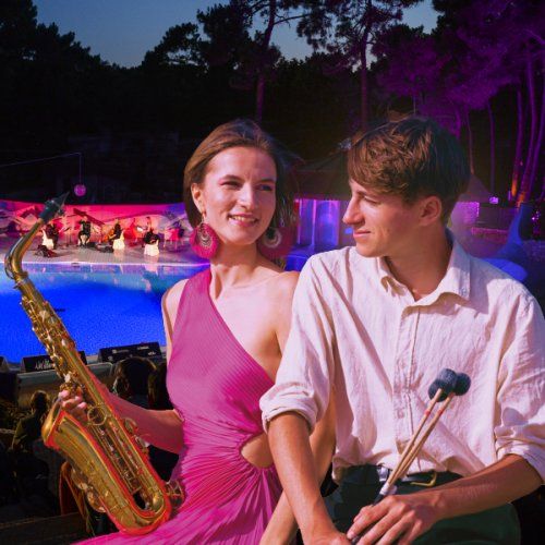 Les notes du saxophone s’harmonisent avec les sons envoutants du marimba dans le cadre atypique du Zoo de La Palmyre, sur fond sonore animalier imprévisible et improvisé.